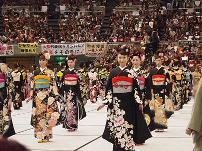 中振袖着付け競技。華やかなモデルさんがズラリ。